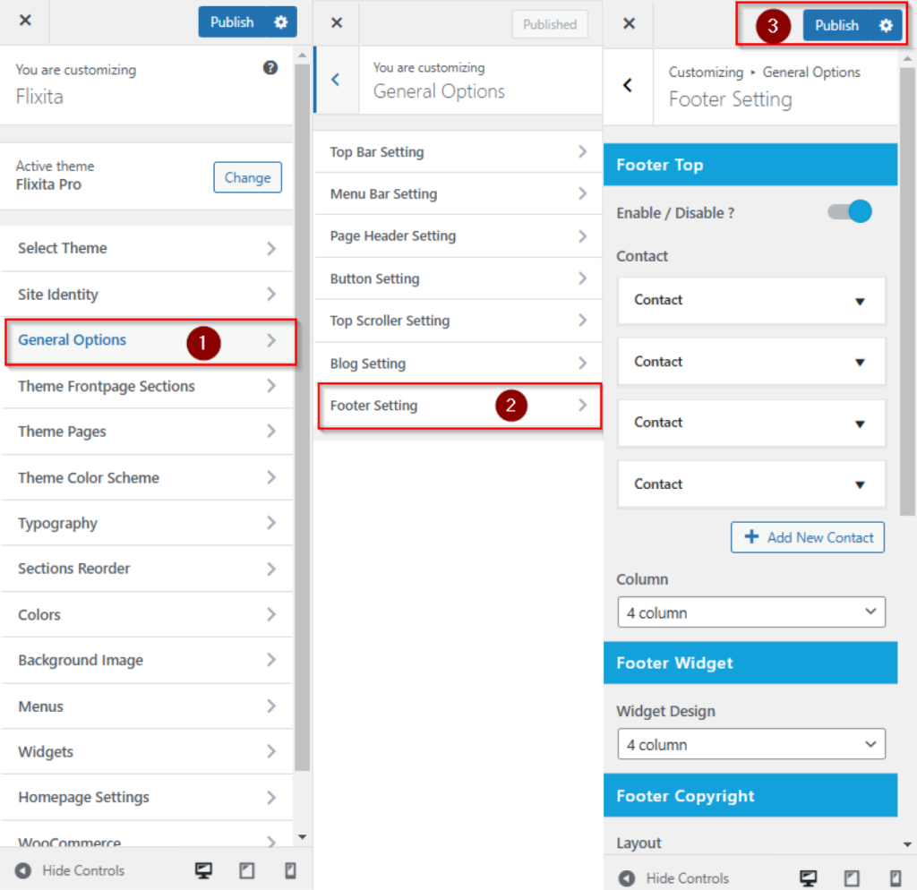 Genral Option >> Footer Setting >>