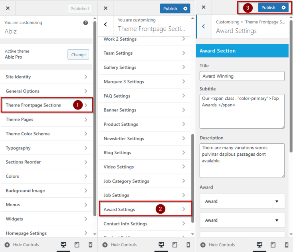 Under Award Settings >>