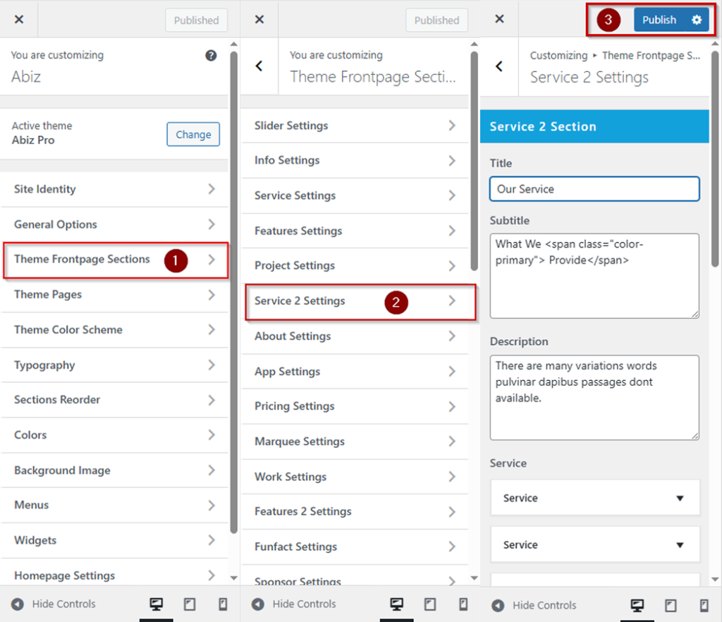 look for the Theme Frontpage Sections option in the left-hand menu >>
