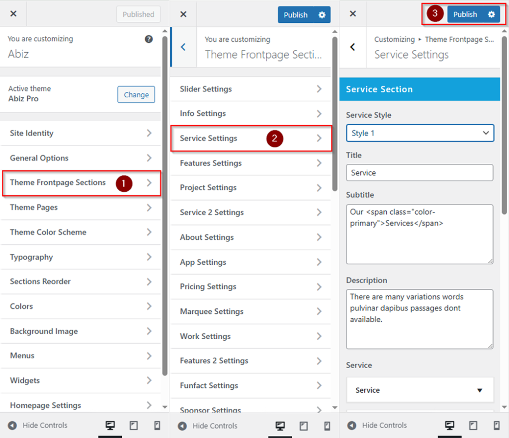 look for the Theme Frontpage Sections option in the left-hand menu >>